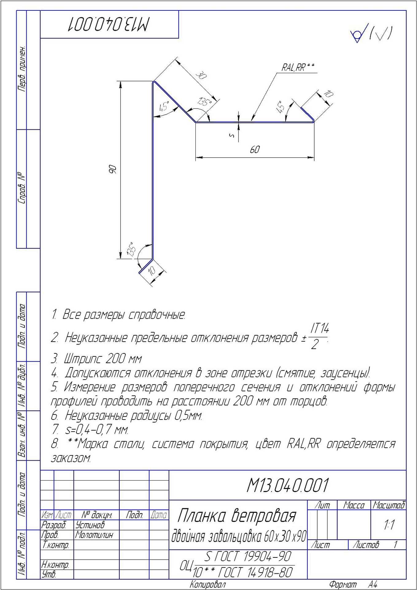 | Защитный слой, г/м2 | Zn 275 |
